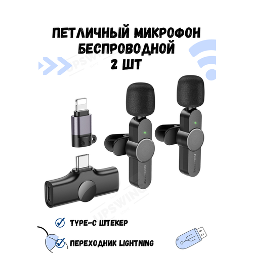 Беспроводной микрофон для смартфона Lightning Type-C 2шт