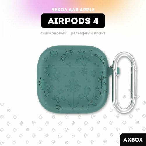 Чехол для наушников Apple Airpods 4, зелёный, "Цветы", с карабином