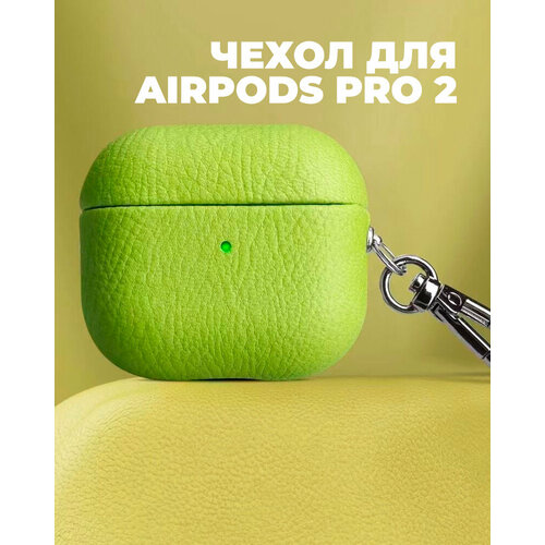 Чехол для AirPods Pro 2 Hardshell Hermes / Защитный чехол Эрмес из экокожи для Аирподс Про 2, Цвет: Лаймовый