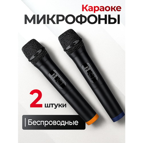 Беспроводной микрофон, микрофон для караоке беспроводной, 2 микрофона, комплект, приемник, переходник AUX