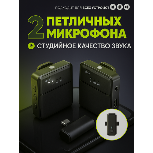 Петличный микрофон с шумоподавлением, петличный микрофон беспроводной для телефона, 2 в 1 для айфона и Type C, AUX, 2 микрофона