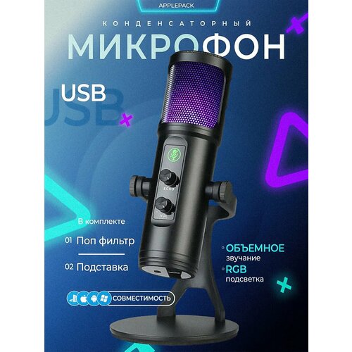 Микрофон для пк игровой настольный RGB USB
