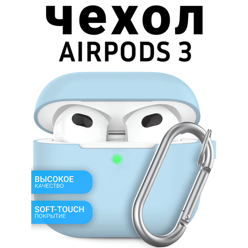 Чехол для AirPods 3 c карабином Soft-Touch премиум / Чехол для Аирподс 3 / Yooplace, цвет: (Light blue)