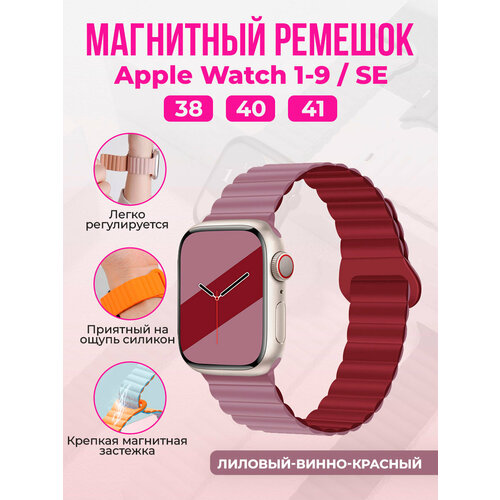 Магнитный силиконовый ремешок для Apple Watch 1-9 / SE (38/40/41 мм), лиловый-винно-красный