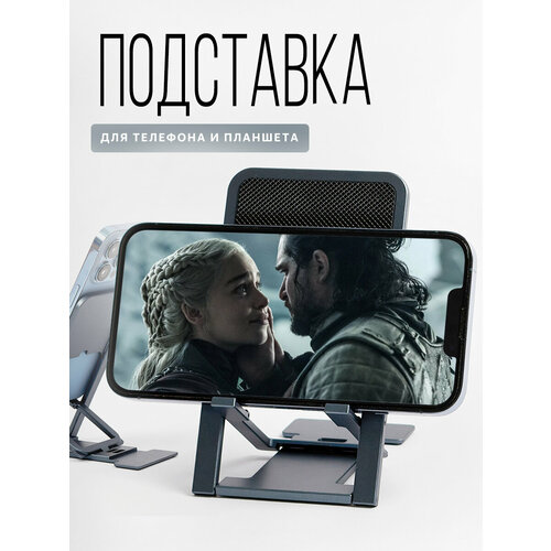Подставка для телефона и планшета настольная, складная, серый металлик