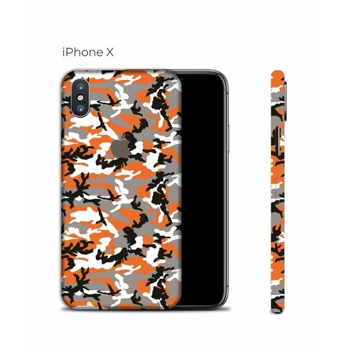 Защитная пленка на Айфон Икс с защитой краёв / Виниловая наклейка на заднюю панель iPhone X с принтом Камуфляж ORANGE