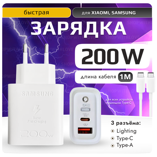 Зарядное устройство для Samsung Power Adapter Trio, 200W, быстрая зарядка, 3 разъема USB, TYPE-C *2