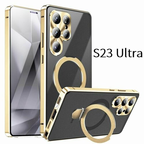Двусторонний защитный чехол для Samsung Galaxy S23 Ultra (Самсунг Галакси S23 Ультра), Полная защита 360 магнитной подставкой Magsafe Чехол, Золото