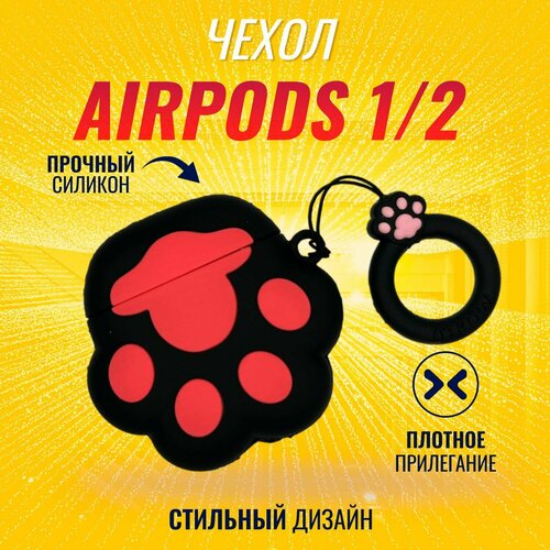 Чехол для наушников AirPods 1 и 2 / Аирподс 1 и 2 версии (Чёрная лапка)