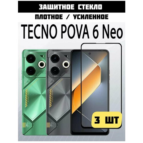 Плотное усиленное Защитное стекло для Tecno POVA 6 Neo Пова 6 Нео с усиленными краями 3 ШТ