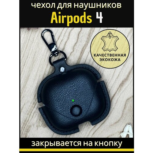 Чехол для наушников AirPods 4 (2024) на кнопке с карабином, эко кожа