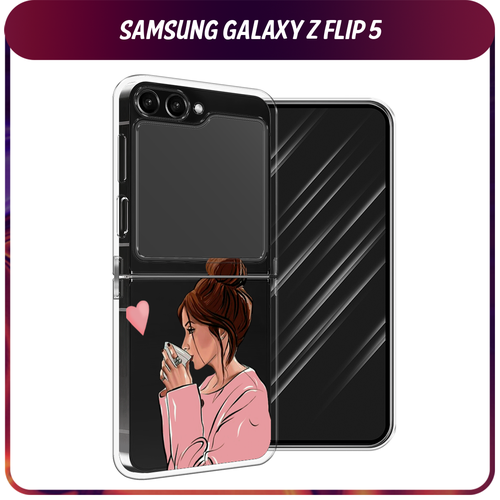 Чехол на Samsung Galaxy Z Flip 5 / Самсунг Z Flip 5 с принтом Подмигивающая лиса с кофе, прозрачный