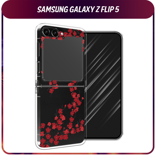 Чехол на Samsung Galaxy Z Flip 5 / Самсунг Z Flip 5 с принтом Красная сакура, прозрачный