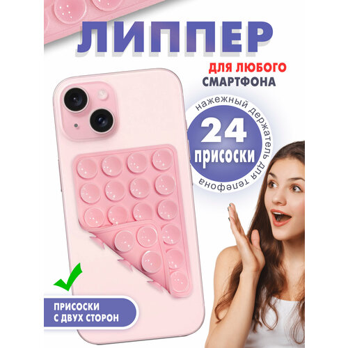 Липпер на телефон Светло-розовый, 24 присоски, двухсторонний на присосках, крепление и лучший держатель для телефона