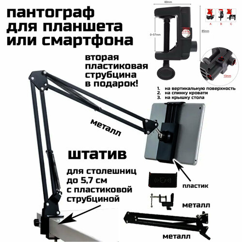 Пантограф (шарнирный держатель) для крепления планшета к столу + доп. струбцина