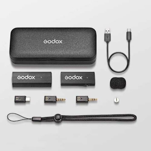 Компактная и легкая радиосистема Godox Virso S M1 включает в себя один передатчик (TX) со встроенным всенаправленным микрофоном и двухканальный приемник (SRX) с подключением TRS 3,5 мм.