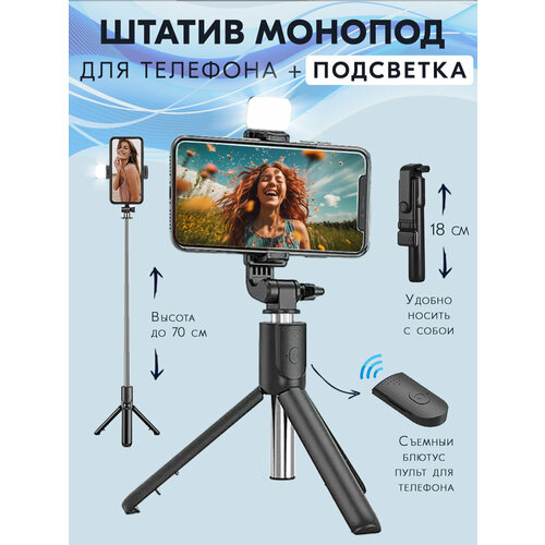 Монопод-трипод для телефона с подсветкой и bluetooth-пультом для селфи, штатиф