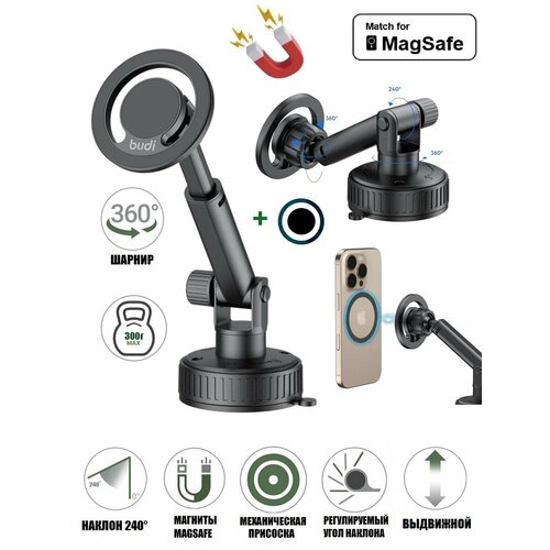 Держатель для телефона в машину магнитный на вакуумной присоске с функцией Magsafe