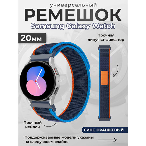 Нейлоновый универсальный ремешок для Samsung Galaxy Watch 6/7, 20мм, сине-оранжевый