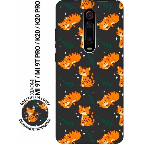 Матовый Soft Touch силиконовый чехол на Xiaomi Mi 9T, Mi 9T Pro, K20, K20 Pro, Сяоми Ми 9Т, Ми 9Т Про с 3D принтом "Tigers" черный