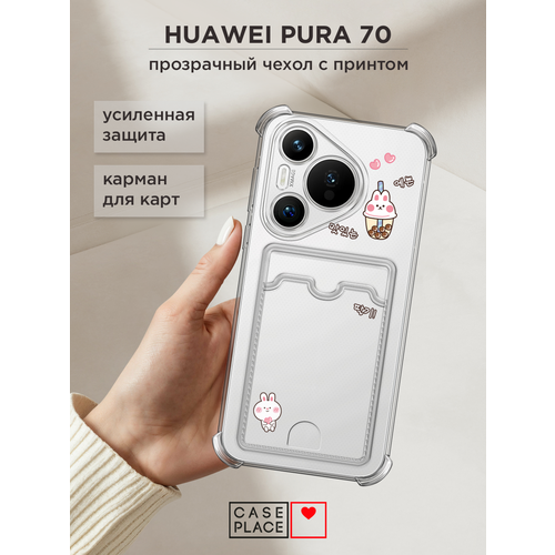 Чехол на Huawei Pura 70 (Хуавей Пура 70) с картой и принтом Bunny bubble tea