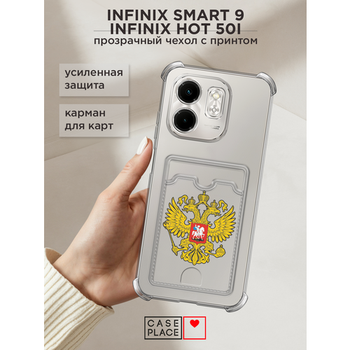 Чехол на Infinix Smart 9/Hot 50i (Инфиникс Смарт 9/Хот 50i) с картой и принтом Герб Россиии