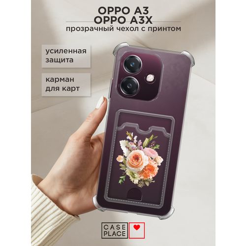 Чехол на Oppo A3/A3x (Оппо А3/A3x) с картой и принтом Нежный букет