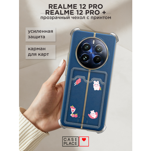Чехол на Realme 12 Pro/Realme 12 Pro+ (Реалми 12 Про/Реалми 12 Про Плюс) с картой и принтом Милый корейский кролик
