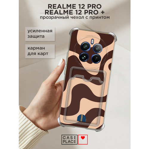 Чехол на Realme 12 Pro/Realme 12 Pro+ (Реалми 12 Про/Реалми 12 Про Плюс) с картой и принтом Кофейные узоры