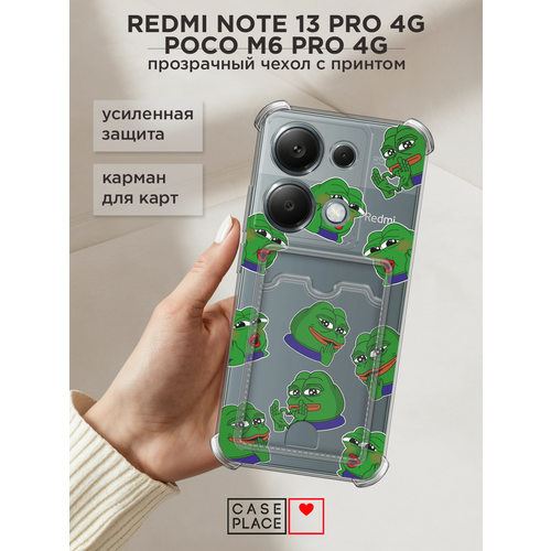 Чехол на Xiaomi Redmi Note 13 Pro 4G/POCO M6 Pro 4G (Сяоми Редми Нот 13 Про 4G/Поко М6 Про 4G) с картой и принтом Pepe frog heart pattern