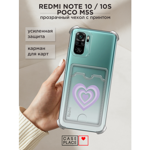 Чехол на Xiaomi Redmi Note 10/10S/Poco M5s (Редми Нот 10/10S/Поко M5s) с картой и принтом Сиреневое сердечко