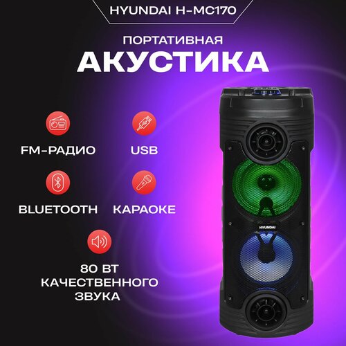 Минисистема HYUNDAI H-MC170 80 Вт, караоке, USB, bluetooth, FM - радио