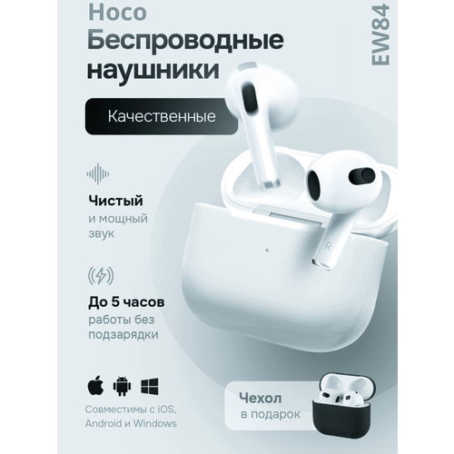 Наушники Hoco EW84, беспроводные, BT 5.3, сенсорное управление, время работы 6 часов, белые