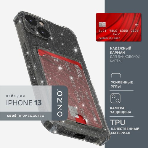 Чехол ONZO "KARTA" для Apple iPhone 13, темно-прозрачный (серебряные блестки)