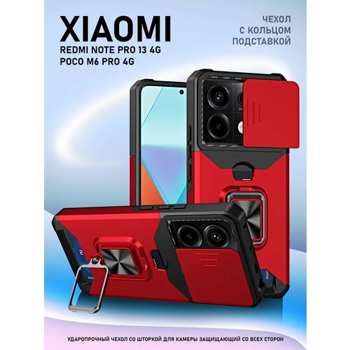 Чехол О'Кейси, для Xiaomi Redmi Note 13 Pro/Poco M6, противоударный, держатель-кольцо