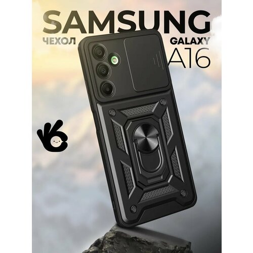 Чехол О'кейси, для Samsung Galaxy A16, чёрный, защита камеры, держатель-кольцо
