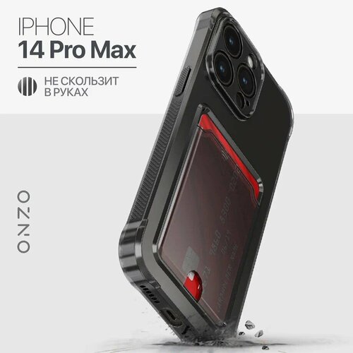 Противоуданый чехол на iPhone 14 Pro Max / Айфон 14 Про Макс с карманом, с закрытой камерой, темно-прозрачный