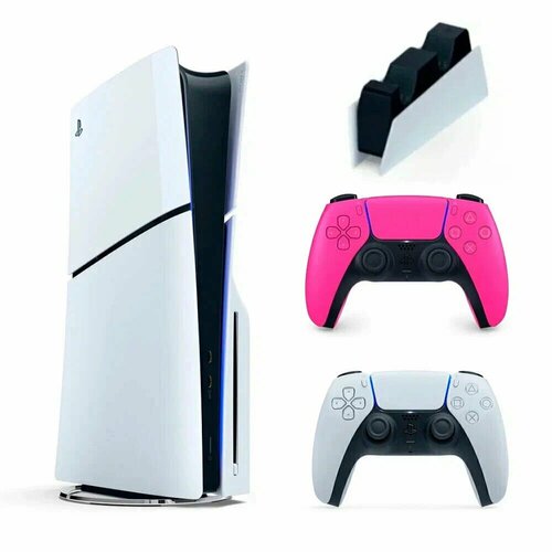 Игровая консоль Sony PlayStation 5 Slim, 1ТБ(с дисководом), 2й геймпад розовый + Зарядная станция + переходник
