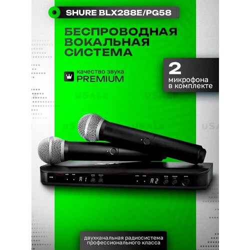 SHURE BLX288E/PG58 беспроводная профессиональная система для пения, караоке, мероприятий 2 микрофона PG58