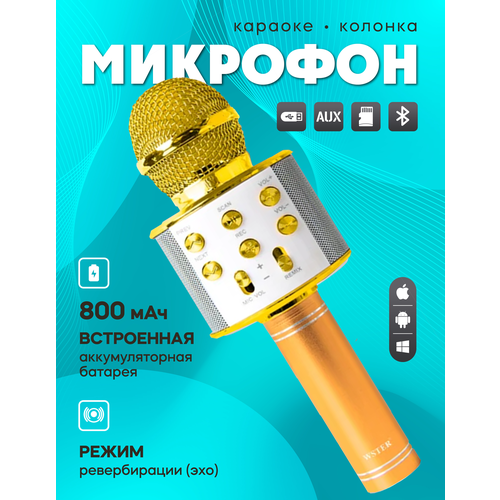Оригинальный караоке-микрофон WSTER WS-858 с колонкой, Bluetooth, портативный, 5Вт, 1800mAh, золото