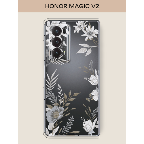 Чехол на Honor Magic V2 / Хонор Меджик V2 с принтом Цветы сепия, прозрачный