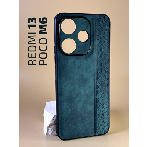 Чехол кожаный на Redmi 13 / Poco M6 (Чехол на Редми 13/Поко М6) с защитой камеры, геометрия
