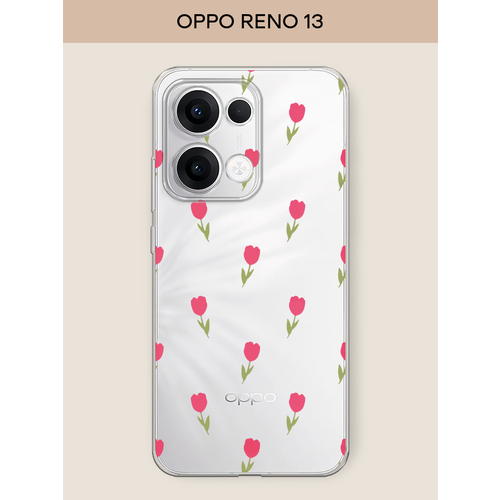 Силиконовый чехол "Паттерн из тюльпанов 2" на Oppo Reno 13 / Оппо Рено 13, прозрачный