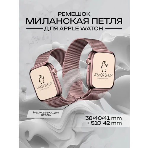 Металлический ремешок для Apple Watch 38,40,41, S10 42 мм, миланское плетение, розовое золото