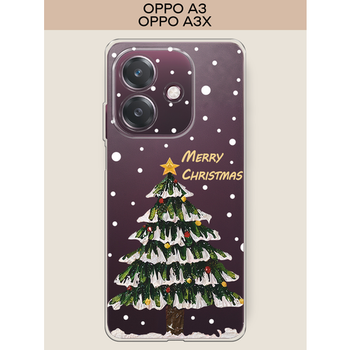 Силиконовый чехол "Нарядная ёлка рисунок" на Oppo A3/A3x / Оппо А3/A3x, прозрачный