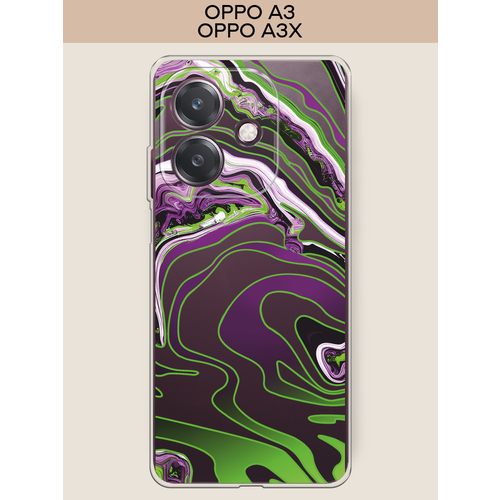 Силиконовый чехол "Фиолетово-зелёные разводы" на Oppo A3/A3x / Оппо А3/A3x, прозрачный