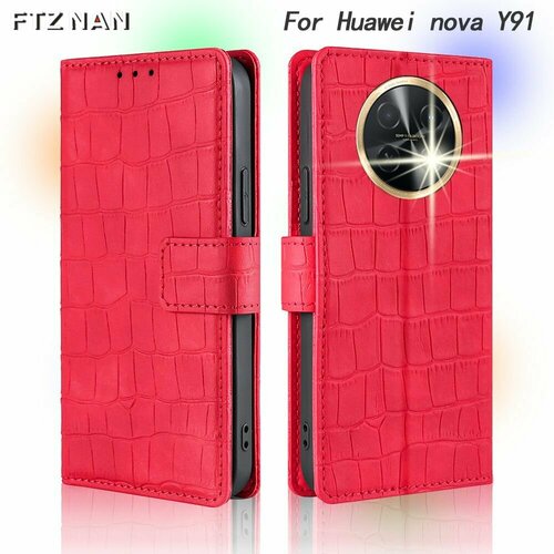 Чехол книжка на Huawei Nova Y91/ Чехол подходит для Хуавей Нова У91, противоударный, Новый, с магнитом, (красный)