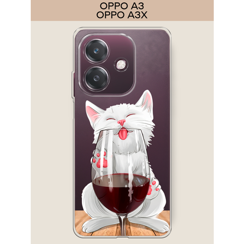 Чехол на Oppo A3/A3x / Оппо А3/A3x с принтом Кот с бокалом, прозрачный