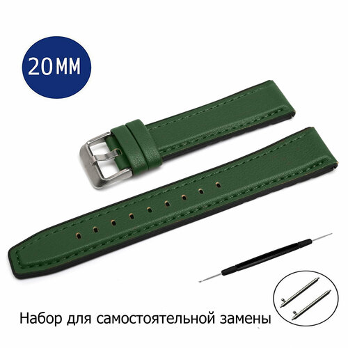 Ремешок силикон-кожа для смарт часов 20 мм зеленый
