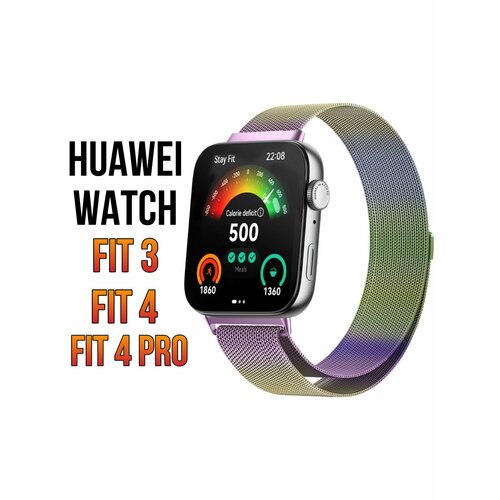 Стальной, сменный ремешок-браслет S&TAI подходит для умных смарт-часов HUAWEI Watch Fit 3, Fit 4, Fit 4 PRO плетение миланская петля с магнитным замком гальваническое покрытие, износостойкий, хамелеон